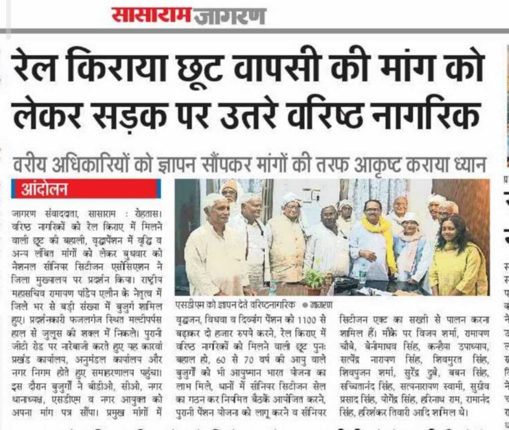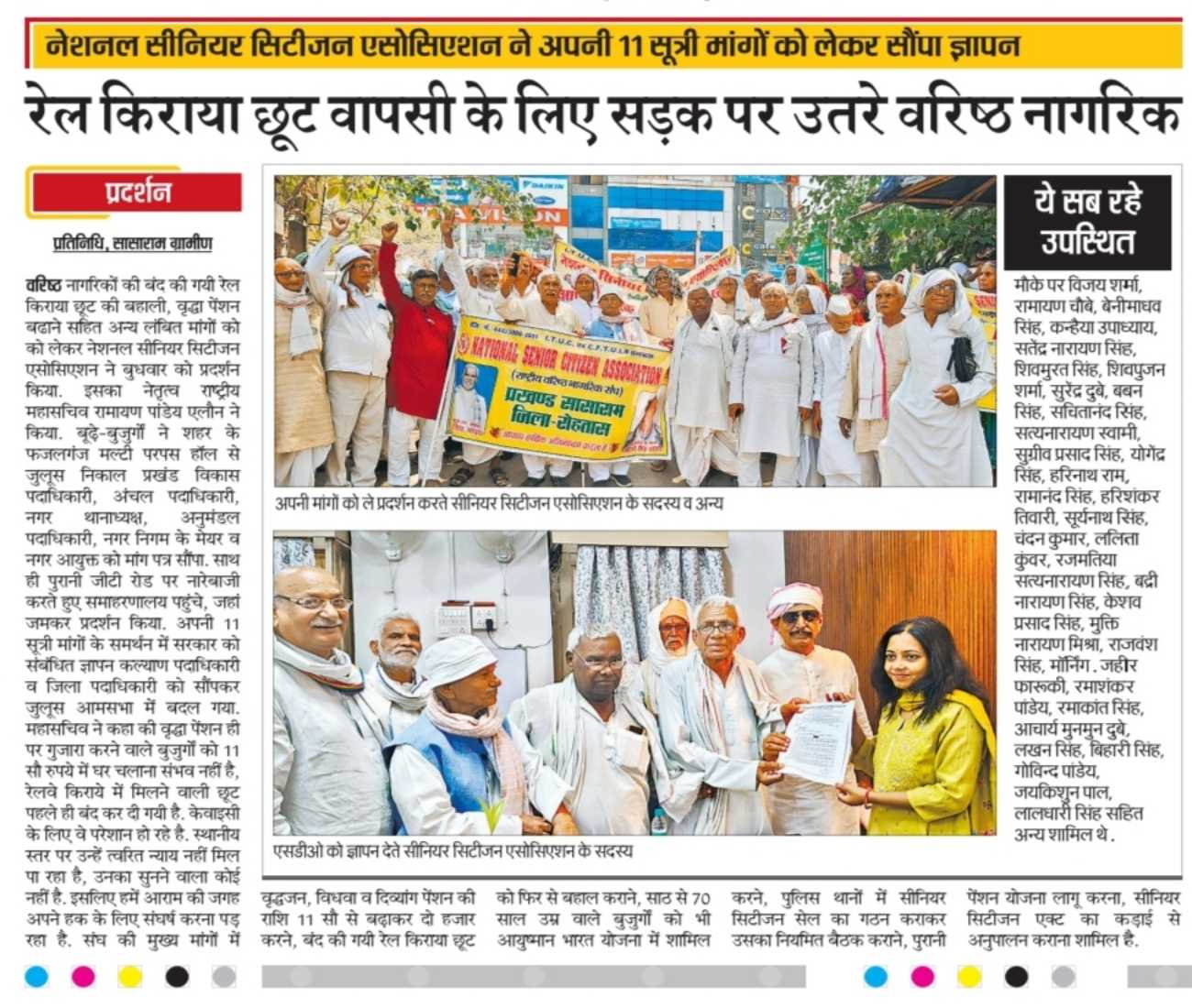 After the increased the old age pension in Bihar, the movement for restoration of railway fare concession of senior citizens and inclusion of all ages senior citizens in the Ayushman Bharat Swasthaya Yojana are continues.